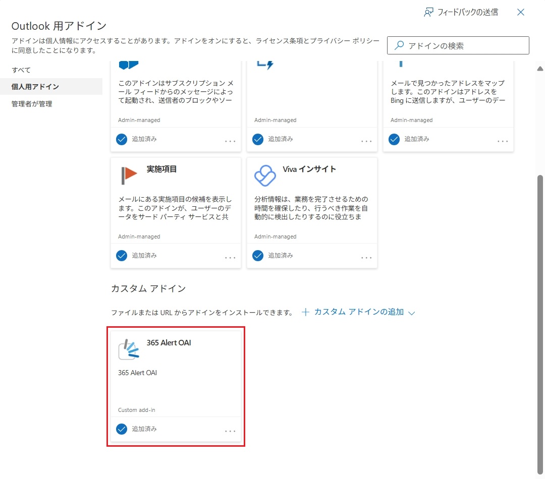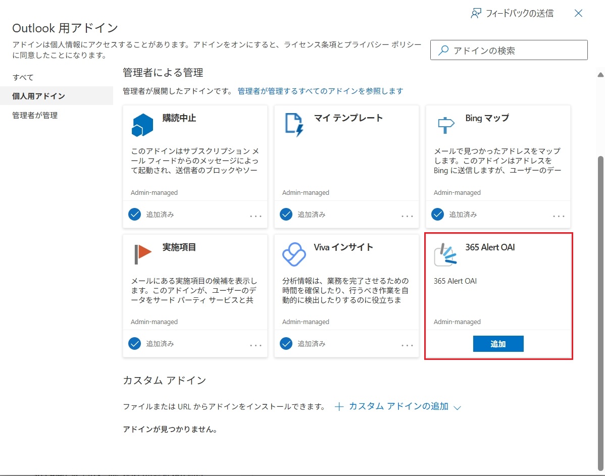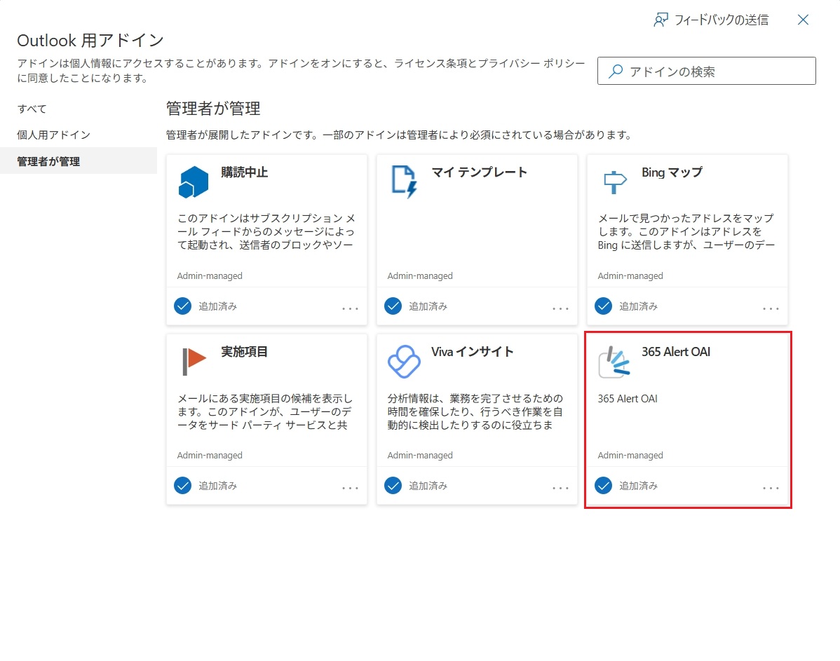 ヒント各自でインストールした場合は、365 Alert OAIが表示されなくなります。