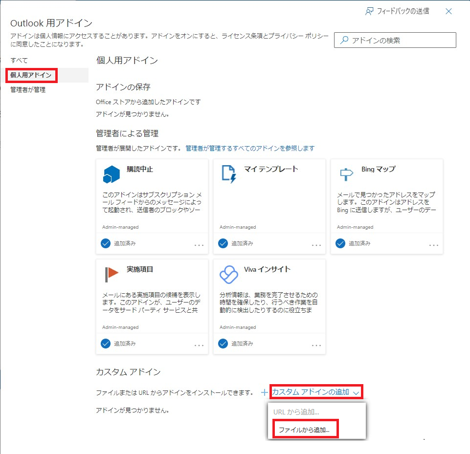 以下では、各自でOutlook Add-inをインストールする手順について記載します。