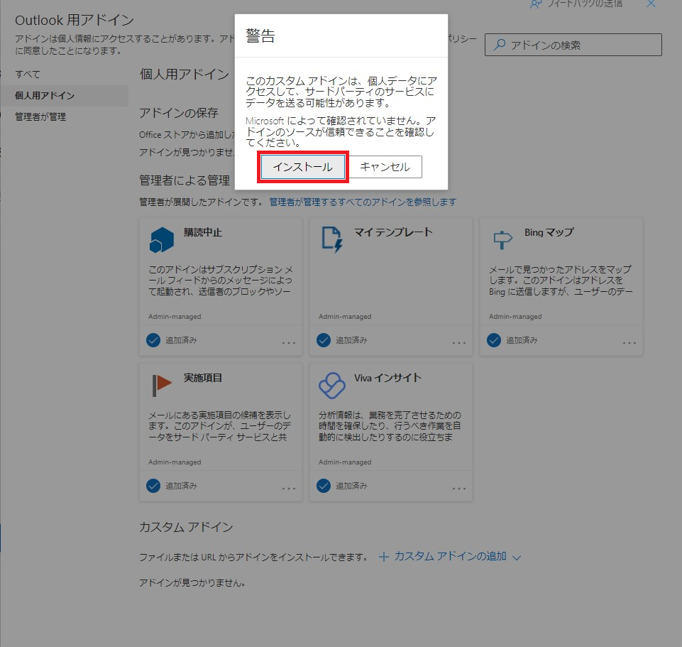 各自でOutlook Add-inをインストールする場合