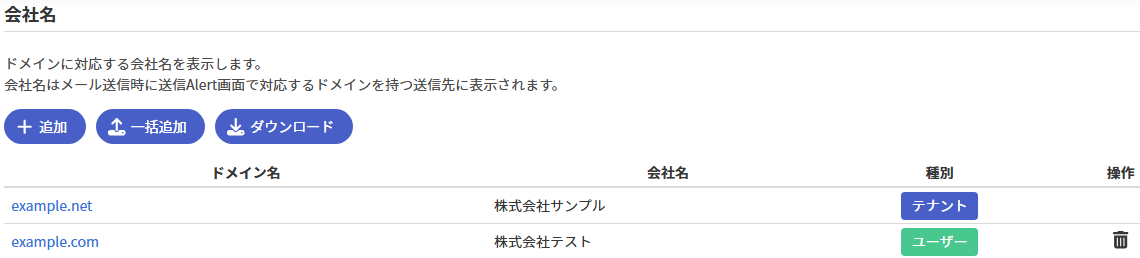会社名一覧の[操作]列のをクリックすると会社名が削除されます。