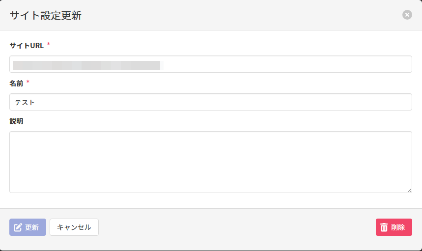サイト設定更新画面で以下の項目を入力し、[更新]をクリックしてサイト設定を更新します。